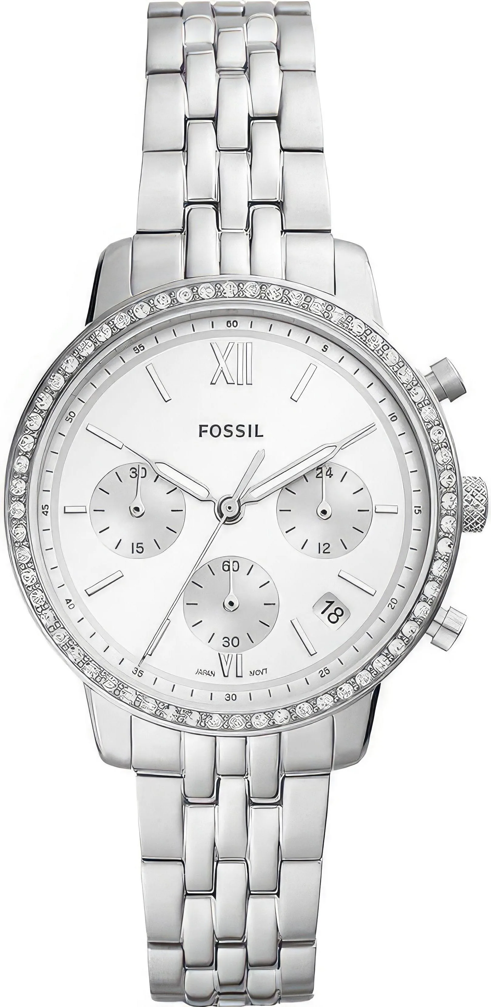 Женские наручные часы Fossil Neutra ES5217. Точный кварцевый механизм с аналоговой индикацией. Корпус изготовлен из высококачественной нержавеющей стали 316L с высокими антикоррозийными свойствами. На стрелки и отметки нанесен светонакопительный состав, благодаря этому считывать информацию с циферблата возможно и в темноте. На циферблате отображается текущее число месяца. Функция хронографа. Отображение времени возможно в 12-часовом или 24-часовом формате. Браслет из нержавеющей стали. Прочное, устойчивое к царапинам минеральное стекло защищает часы от повреждений. Часы являются водонепроницаемыми до 5 Бар. Цвет корпуса: Серебристый. Цвет циферблата: Серебристый. Ширина (с заводной головкой): 36мм. Толщина: 12мм. Гарантия: 2 года.