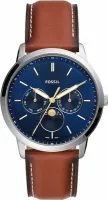 Мужские наручные часы Fossil Neutra FS5903. Точный кварцевый механизм с аналоговой индикацией. Ремешок изготовлен из кожи. Браслет из нержавеющей стали. Прочное, устойчивое к царапинам минеральное стекло защищает часы от повреждений. На циферблате отображается текущее число месяца и день недели. Часы являются водонепроницаемыми до 5 Бар. Цвет циферблата: Серебристый. Цвет корпуса: Синий. На стрелки и отметки нанесен светонакопительный состав, благодаря этому считывать информацию с циферблата возможно и в темноте. Толщина: 10 мм. Гарантия: 2 года.