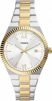 Мужские наручные часы Fossil Scarlette ES5259. Точный кварцевый механизм с аналоговой индикацией. Браслет из нержавеющей стали. Браслет из нержавеющей стали. Прочное, устойчивое к царапинам минеральное стекло защищает часы от повреждений. На циферблате отображается текущее число месяца. Часы являются водонепроницаемыми до 5 Бар. Цвет циферблата: Серебристый. Цвет циферблата: Желтое золото. Цвет корпуса: Серебристый. На стрелки и отметки нанесен светонакопительный состав, благодаря этому считывать информацию с циферблата возможно и в темноте. Толщина: 8 мм. Гарантия: 2 года.