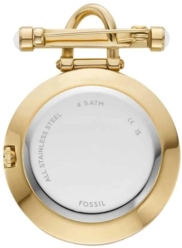 Женские часы-брошь. Круглый стальной корпус. Рифленый безель. Циферблат выполнен по технологии Sunray (солнечные лучи). Метки в виде штрихов и двух римских цифр VI и XII. Рифленая заводная головка с защитой. Люминесцентные стрелки. Крепление с искусственным жемчугом. Водозащита 50 метров (5 АТМ/bar): выдерживают мытье рук, попадание крупных капель.