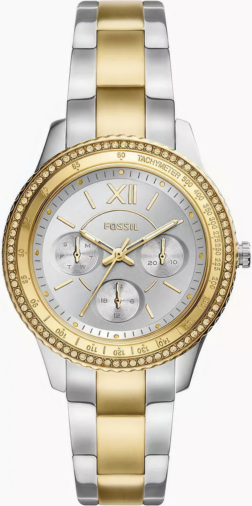 Женские кварцевые часы из серии Stella Sport. Круглый стальной корпус. Безель с покрытием цвета золота украшен кристаллами. Серебристый циферблат. Минеральное стекло. Водозащита 50 м. Стальной браслет с частичным покрытием. Браслетная застежка.
