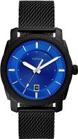 Мужские кварцевые часы. Центральные часовая, минутная и секундная стрелки. Апертура даты в позиции 6 часов. Синий циферблат. Круглый корпус выполнен из полированной нержавеющей стали с черным IP покрытием. Диаметр корпуса составляет 42 мм, толщина 10 мм. Стальной браслет с покрытием выполнен в технике миланского плетения, раскладная застежка. Прочное минеральное стекло устойчивое к мелким механическим повреждениям. Водостойкость WR 50 (мытье рук, дождь).