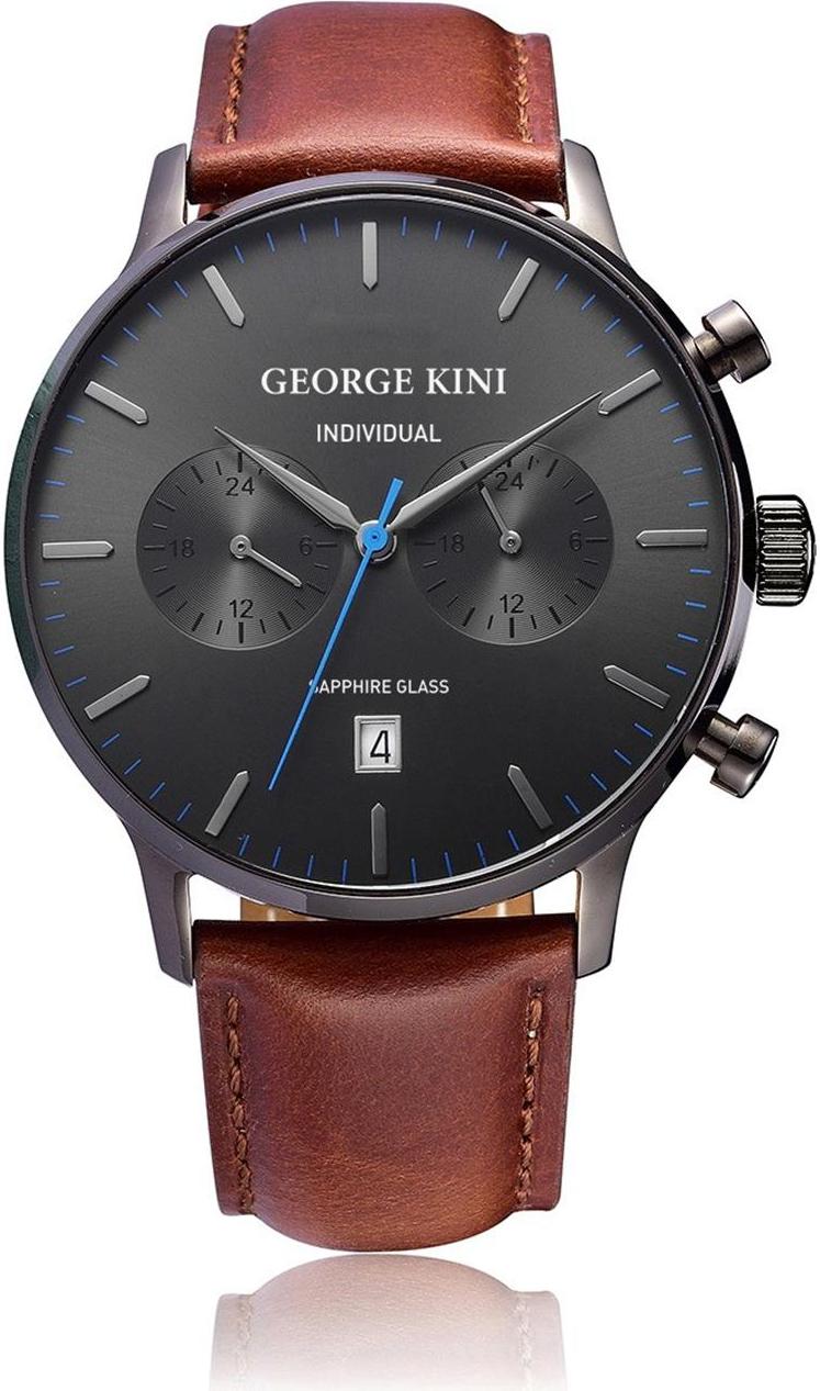 Мужские наручные часы George Kini Individual GK.IND00012. Точный кварцевый механизм с аналоговой индикацией. В отличие от механических часов, не требуют завода и работают от батареи, показывая отклонение всего несколько секунд в месяц. Ремешок изготовлен из кожи. Гибкость такого ремешка позволяет точно регулировать посадку часов на руке. Отображение времени возможно в 12-часовом или 24-часовом формате. Корпус изготовлен из высококачественной нержавеющей стали 316L с высокими антикоррозийными свойствами. Сапфировое стекло. Искусственно изготовленное стекло с высокой прочностью и устойчивостью к царапинам. Часы являются водонепроницаемыми до 5 Бар. Цвет корпуса: Черный. Цвет циферблата: Черный. Толщина: 10 мм. Гарантия: 2 года. Другие наименования модели: GK.IND0012.