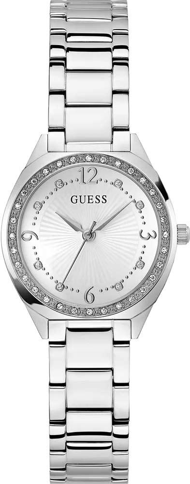 Классические женские наручные часы в круглом корпусе из стали. Модель отличается гильошированным циферблатом со смешанной разметкой (арабские цифры и штрихи), рифленой заводной головкой и надежным браслетом с раскладывающейся застежкой. Аксессуар для тех, кто ценит точность и элегантность.