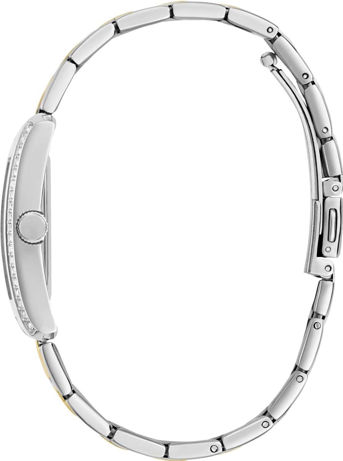 Наручные часы для стильных женщин. Стальной прямоугольный корпус. Циферблат в центре выполнен по технологии Sunray (солнечные лучи). Метки в виде штрихов и римских цифр. Рифленая заводная головка. Браслет с раскладывающейся застежкой.