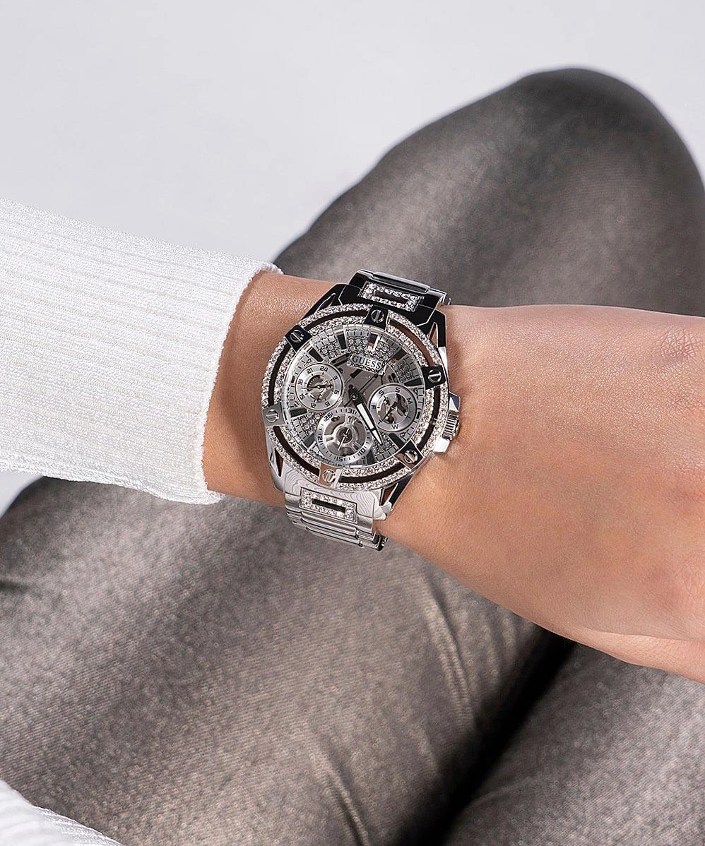 Утонченные женские часы Queen в роскошном исполнении станут вашим главным аксессуаром в этом сезоне. Модель представляет собой скелетон с функцией отображения времени в 12-ти и 24-х часовом формате, при этом дата и день недели вынесены на отдельные циферблаты. Циферблат дополнен метками в виде штрихов, а рифленая заводная головка имеет защитные ушки. Комплектация завершается браслетом с раскладывающейся застежкой.