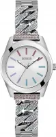 Женские часы Guess Serena с круглым стальным корпусом привлекают внимание благодаря чарующему блеску кристаллов. Модель оснащена циферблатом с метками в виде штрихов и рифленой заводной головкой.