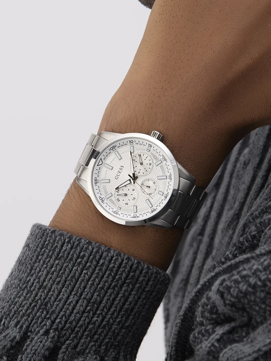 Мужские наручные часы Guess Trend GW0963G1. Точный кварцевый механизм с аналоговой индикацией. В отличие от механических часов, не требуют завода и работают от батареи, показывая отклонение всего несколько секунд в месяц. На стрелки и отметки нанесен светонакопительный состав, благодаря этому считывать информацию с циферблата возможно и в темноте.Браслет из нержавеющей стали обладает высокой прочностью и износостойкостью, обеспечивая долговечность даже при активной эксплуатации. Материал устойчив к коррозии и сохраняет свой внешний вид надолго. Отображение времени возможно в 12-часовом или 24-часовом формате. Корпус изготовлен из высококачественной нержавеющей стали 316L с высокими антикоррозийными свойствами. Прочное, устойчивое к царапинам минеральное стекло защищает часы от повреждений. Часы являются водонепроницаемыми до 5 Бар. Цвет корпуса: Серебристый. Цвет циферблата: Серебристый. Высота (с ушками): 44 мм. Толщина: 10 мм. Гарантия: 2 года.