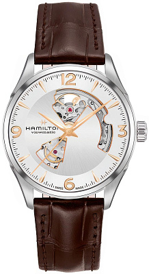 Hamilton Мужские швейцарские часы Jazzmaster H32705551. Механические с автоподзаводом. Пружина механизма заводится автоматически благодаря естественным движениям владельца в процессе ежедневной носки часов. Ремешок изготовлен из кожи. Корпус изготовлен из высококачественной нержавеющей стали 316L с высокими антикоррозийными свойствами. Сапфировое стекло. Искусственно изготовленное стекло с высокой прочностью и устойчивостью к царапинам. Часы являются водонепроницаемыми до 5 Бар. Цвет циферблата: Серебристый. Цвет корпуса: Серебристый. На стрелки и отметки нанесен светонакопительный состав, благодаря этому считывать информацию с циферблата возможно и в темноте. Толщина: 11 мм. Гарантия: 2 года.