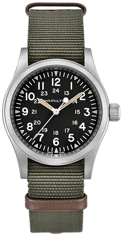 <b>Мужские наручные часы Hamilton Khaki Field H69439931.</b> Механические с ручным подзаводом. Корпус изготовлен из высококачественной нержавеющей стали 316L с высокими антикоррозийными свойствами. На стрелки и отметки нанесен светонакопительный состав, благодаря этому считывать информацию с циферблата возможно и в темноте. Текстильный ремешок. Сапфировое стекло. Искусственно изготовленное стекло с высокой прочностью и устойчивостью к царапинам. Часы являются водонепроницаемыми до 5 Бар. Цвет корпуса: Серебристый. Цвет циферблата: Черный. Гарантия: 2 года.
