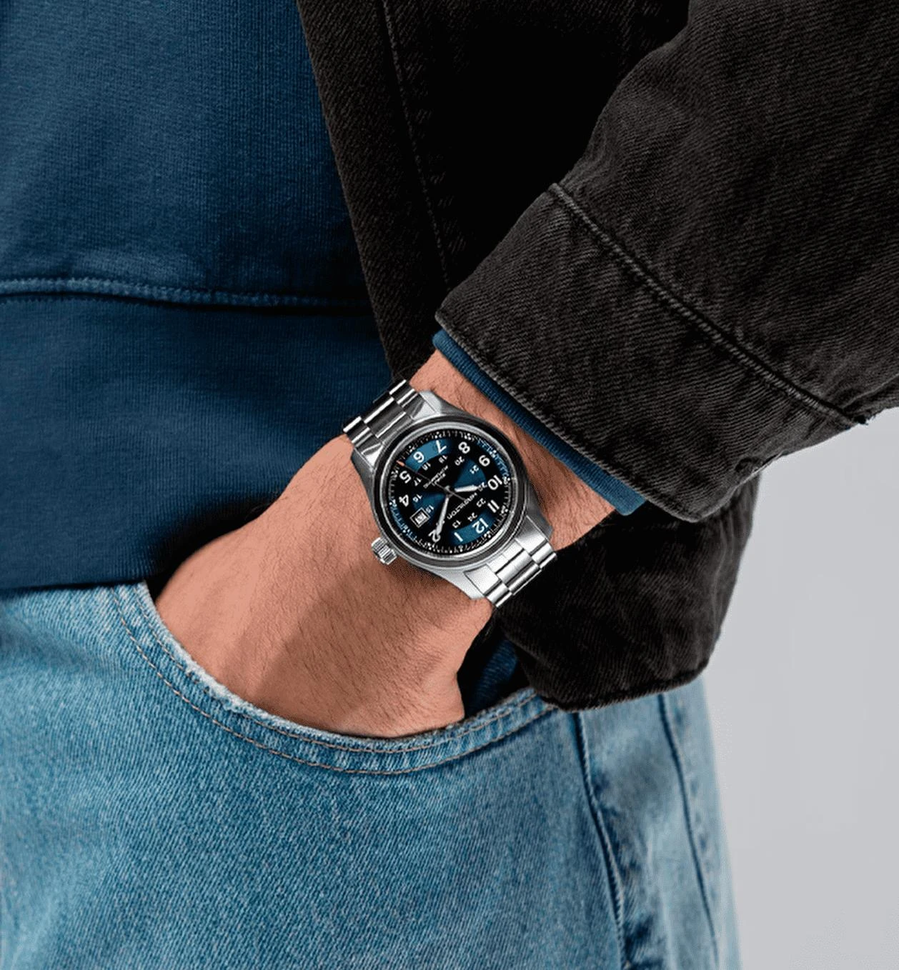 Hamilton Мужские швейцарские часы Khaki Field H70605140. Механические с автоподзаводом. Пружина механизма заводится автоматически благодаря естественным движениям владельца в процессе ежедневной носки часов. На стрелки и отметки нанесен светонакопительный состав, благодаря этому считывать информацию с циферблата возможно и в темноте. Браслет из нержавеющей стали обладает высокой прочностью и износостойкостью, обеспечивая долговечность даже при активной эксплуатации. Материал устойчив к коррозии и сохраняет свой внешний вид надолго. Корпус изготовлен из высококачественной нержавеющей стали 316L с высокими антикоррозийными свойствами. Сапфировое стекло. Искусственно изготовленное стекло с высокой прочностью и устойчивостью к царапинам. Часы являются водонепроницаемыми до 10 Бар. Цвет корпуса: Серебристый. Цвет циферблата: Синий. Толщина: 11 мм. Гарантия: 2 года.