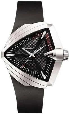 Мужские наручные часы Hamilton Ventura H24655331. Механические с ручным подзаводом. Корпус изготовлен из высококачественной нержавеющей стали 316L с высокими антикоррозийными свойствами. На стрелки и отметки нанесен светонакопительный состав, благодаря этому считывать информацию с циферблата возможно и в темноте. Ремешок изготовлен из каучука. Сапфировое стекло. Искусственно изготовленное стекло с высокой прочностью и устойчивостью к царапинам. Часы являются водонепроницаемыми до 5 Бар. Цвет корпуса: Серебристый. Цвет циферблата: Черный. Гарантия: 2 года.
