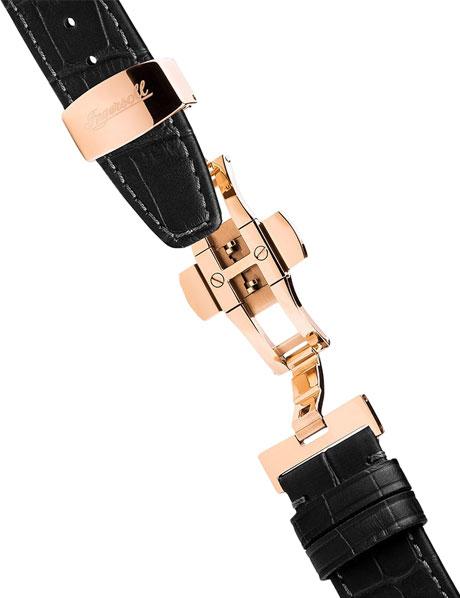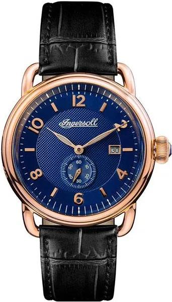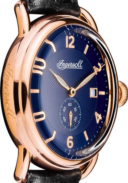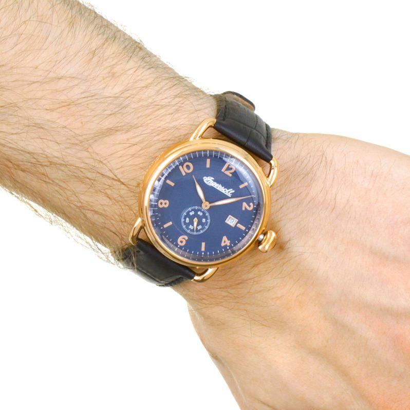 Мужские наручные часы с окошком даты и секундной стрелкой на отдельном циферблате. Стальной круглый корпус с покрытием цвета золота. Циферблат с гильошированием.