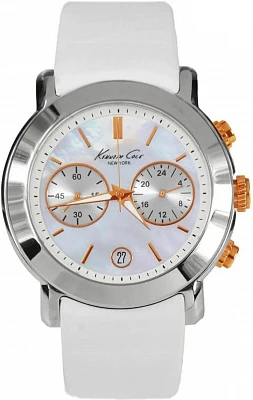 Женские наручные часы Kenneth Cole Leather KC2705. Точный кварцевый механизм с аналоговой индикацией. Корпус изготовлен из высококачественной нержавеющей стали 316L с высокими антикоррозийными свойствами. На стрелки и отметки нанесен светонакопительный состав, благодаря этому считывать информацию с циферблата возможно и в темноте. Ремешок изготовлен из кожи. Прочное, устойчивое к царапинам минеральное стекло защищает часы от повреждений. Часы являются водонепроницаемыми до 5 Бар. Цвет корпуса: Серебристый. Ширина (с заводной головкой): 36мм. Толщина: 10мм. Гарантия: 2 года.