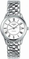 Мужские швейцарские механические часы Longines Flagship L4.774.4.21.6. Диаметр: 36 мм. Калибр: L619. Механизм с автоподзаводом. Запас хода 42 часов. Индикация даты. Сапфировое стекло с антибликовым покрытием. Прозрачная задняя крышка корпуса. Часовая шкала: нарисованные римские цифры. Стрелки: посеребренные, полированные. Белый циферблат. Браслет: нержавеющая сталь. Тройная застежка с системой блокировки и кнопкой. Класс водозащиты 30 метров (3 АТМ / 3 бар) позволит защитить корпус от случайных брызг или капель дождя. Корпус часов изготовлен из стали, серебристого цвета.