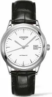 Мужские швейцарские часы Longines Flagship L4.974.4.12.2 с кварцевым механизмом L888 заключены в корпус из нержавеющей стали 316L. Модель украшена посеребренными полированными стрелками и оснащена устойчивым к царапинам сапфировым стеклом с антибликовым покрытием.