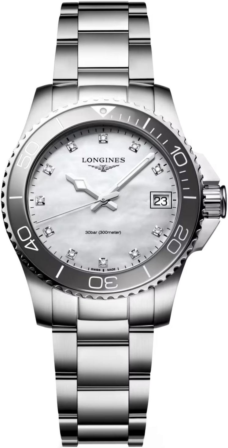 Longines Женские швейцарские часы HydroConquest L3.370.4.87.6. Точный кварцевый механизм с аналоговой индикацией. В отличие от механических часов, не требуют завода и работают от батареи, показывая отклонение всего несколько секунд в месяц. Браслет из нержавеющей стали обладает высокой прочностью и износостойкостью, обеспечивая долговечность даже при активной эксплуатации. Материал устойчив к коррозии и сохраняет свой внешний вид надолго. Корпус изготовлен из высококачественной нержавеющей стали 316L с высокими антикоррозийными свойствами. Сапфировое стекло. Искусственно изготовленное стекло с высокой прочностью и устойчивостью к царапинам. Часы являются водонепроницаемыми до 30 Бар. Цвет корпуса: Серебристый. Цвет циферблата: Белый. Толщина: 11 мм. Гарантия: 2 года.
