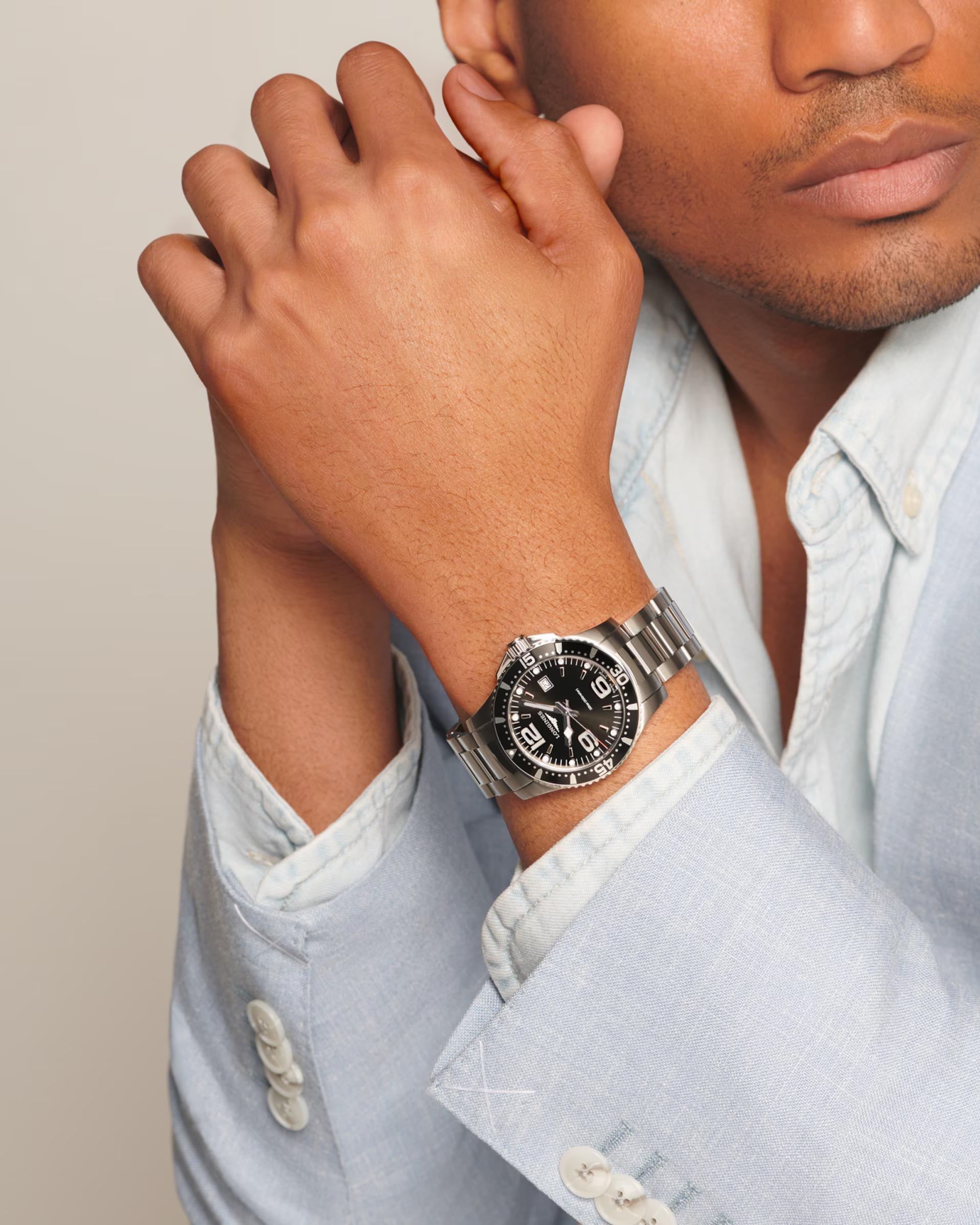 Циферблат выполнен с метками в виде штрихов и арабских цифр. Окошко даты в положении 3 часа. Безель вращается в одном направлении. Завинчивающаяся заводная головка. Super-LumiNova покрытие позволяет узнать время даже в темноте. Сапфировое стекло с антибликовым покрытием защищает от царапин и повреждений. Складная застежка с двойной блокировкой сводит к минимуму вероятность потери. Часы идеально подходят для глубоководного погружения, так как водозащита составляет 30 Бар.