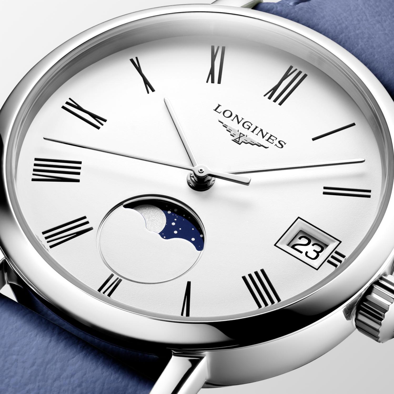 Элегантные классические женские часы Longines Elegant Collection Moonphase L4.330.4.11.2 от Longines представляют собой идеальное сочетание гармоничного дизайна и совершенного технического оснащения. Они идеально подойдут людям, которые хотят подчеркнуть свою индивидуальность и изысканный вкус. Надежный кварцевый механизм, калибр L296, тип батареи RENATA 371. Устойчивое к царапинам сапфировое стекло с многослойным антибликовым покрытием с обеих сторон. Корпус часов изготовлен из нержавеющей стали. Белый матовый циферблат, нарисованные римские цифры, посеребренные полированные стрелки, окошко даты в положении 3 часов, лунный календарь в положении 6 часов. Кожаный ремешок на стандартной застежке. Класс водозащиты 3 бара (30 метров) позволит защитить корпус от случайных брызг или капель дождя. Функция E.O.L. (индикатор заряда батареи). Коллекция LONGINES Elegant отличается изысканным дизайном и неподвластной времени элегантностью. Она воспевает изящный минимализм, отдавая дань уважения часовым традициям бренда.