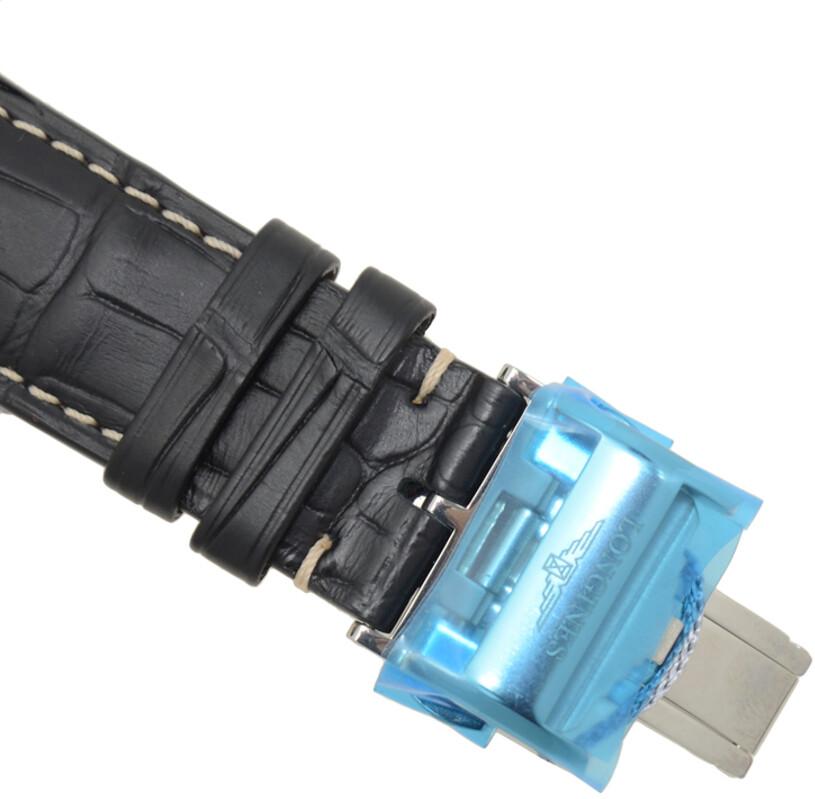 Серебристый корпус диаметром 38,5 мм из нержавеющей стали с чёрным кожаным ремешком. Фиксированный серебристый безель из нержавеющей стали. Черный циферблат с серебристыми стрелками и римскими цифрами. Минутные метки по внешнему ободу. Тип циферблата: аналоговый. Указатель даты в положении «3 часа». Один дополнительный циферблат с индикатором запаса хода. Механизм Longines Calibre L602 с автоматическим подзаводом и запасом хода 42 часа. Сапфировое стекло, устойчивое к царапинам. Прозрачная задняя крышка. Круглая форма корпуса. Размер корпуса: 38,5 мм. Ширина ремешка: 20 мм. Раскладная кнопочная застёжка. Водонепроницаемость до 30 метров / 100 футов. Функции: дата, часы, минуты, секунды, индикатор запаса хода.