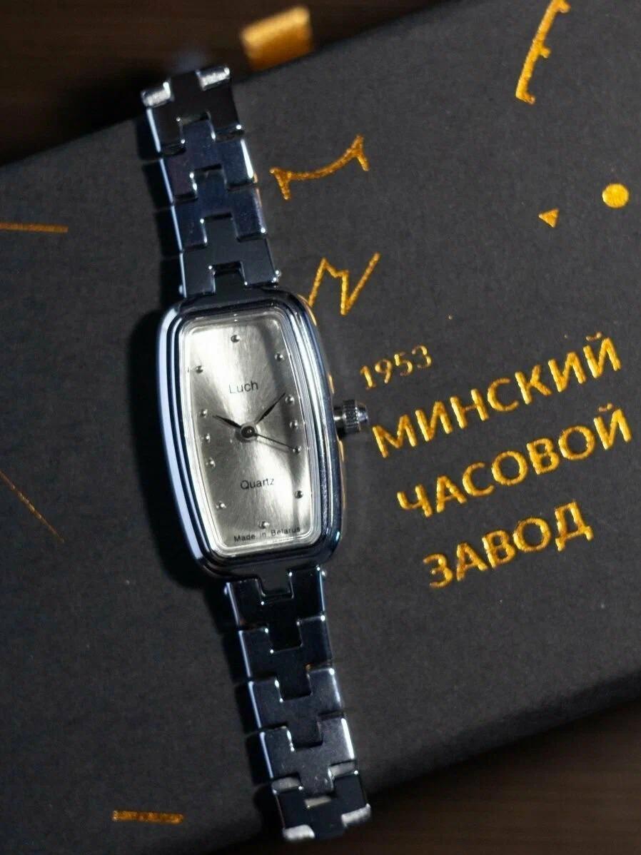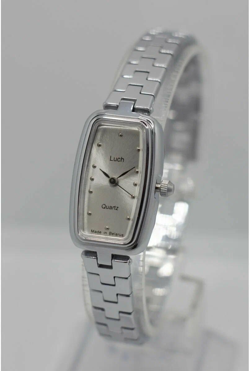Женские наручные часы Luch Ретро 98281518. Точный кварцевый механизм с аналоговой индикацией. Браслет из нержавеющей стали. Браслет из нержавеющей стали. Прочное, устойчивое к царапинам минеральное стекло защищает часы от повреждений. Часы являются водонепроницаемыми до 3 Бар. Цвет циферблата: Серебристый. Цвет корпуса: Серебристый. Толщина: 6 мм. Гарантия: 2 года.