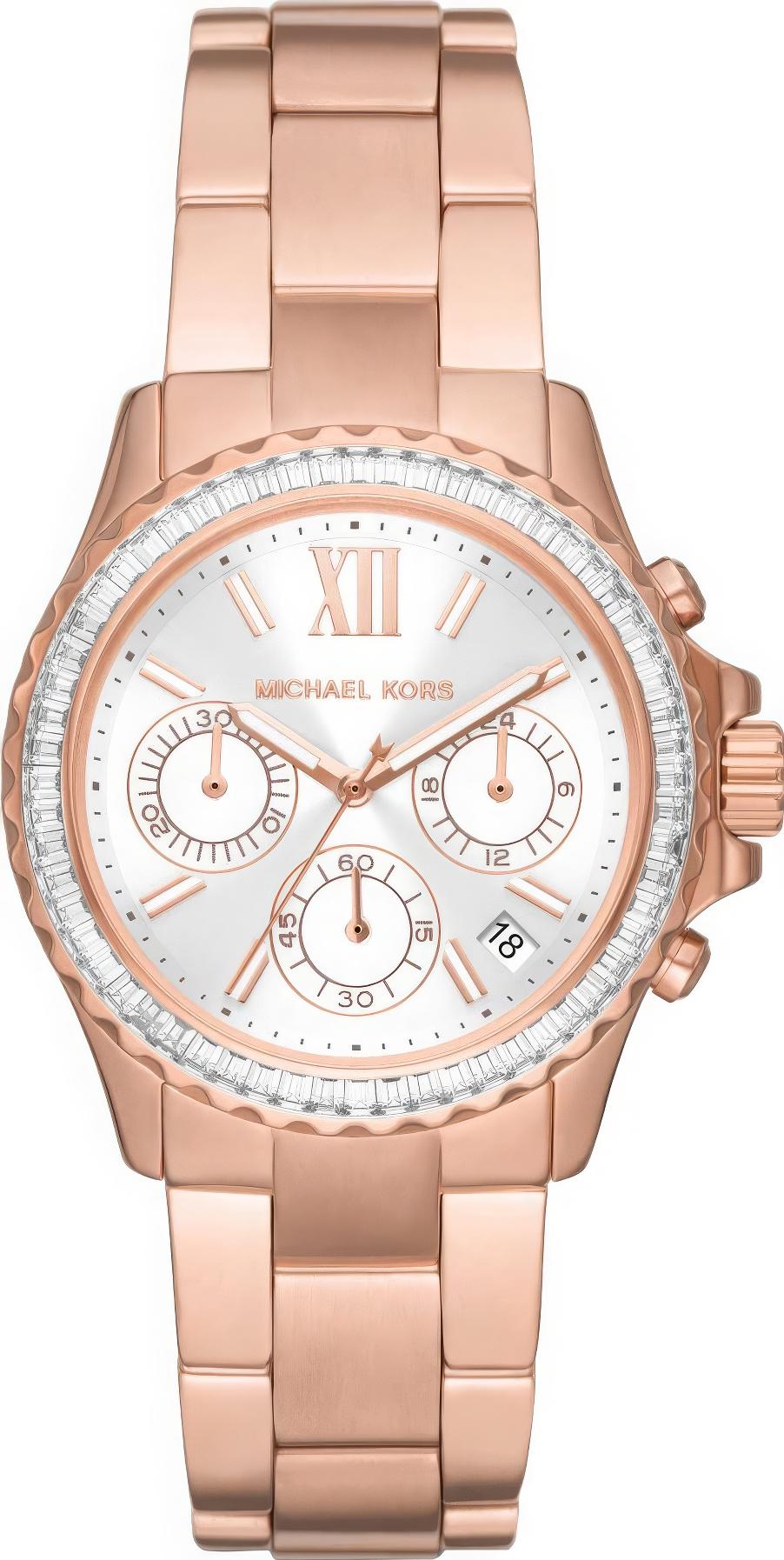 Женские наручные часы Michael Kors Everest MK7213. Точный кварцевый механизм с аналоговой индикацией. Корпус изготовлен из высококачественной нержавеющей стали 316L с высокими антикоррозийными свойствами. На стрелки и отметки нанесен светонакопительный состав, благодаря этому считывать информацию с циферблата возможно и в темноте. На циферблате отображается текущее число месяца. Браслет из нержавеющей стали. Прочное, устойчивое к царапинам минеральное стекло защищает часы от повреждений. Часы являются водонепроницаемыми до 10 Бар. Цвет корпуса: Розовое золото. Цвет циферблата: Серебристый. Ширина (с заводной головкой): 36мм. Толщина: 8мм. Гарантия: 2 года.