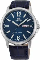 Мужские наручные часы Orient Automatic RA-AA0C05L. Механические с автоподзаводом. Пружина механизма заводится автоматически благодаря естественным движениям владельца в процессе ежедневной носки часов. Корпус изготовлен из высококачественной нержавеющей стали 316L с высокими антикоррозийными свойствами. На стрелки и отметки нанесен светонакопительный состав, благодаря этому считывать информацию с циферблата возможно и в темноте. На циферблате отображается текущее число месяца и день недели. Ремешок изготовлен из кожи. Прочное, устойчивое к царапинам минеральное стекло защищает часы от повреждений. Часы являются водонепроницаемыми до 5 Бар. Цвет корпуса: Серый. Цвет циферблата: Синий. Ширина (с заводной головкой): 42мм. Толщина: 11мм. Гарантия: 2 года.