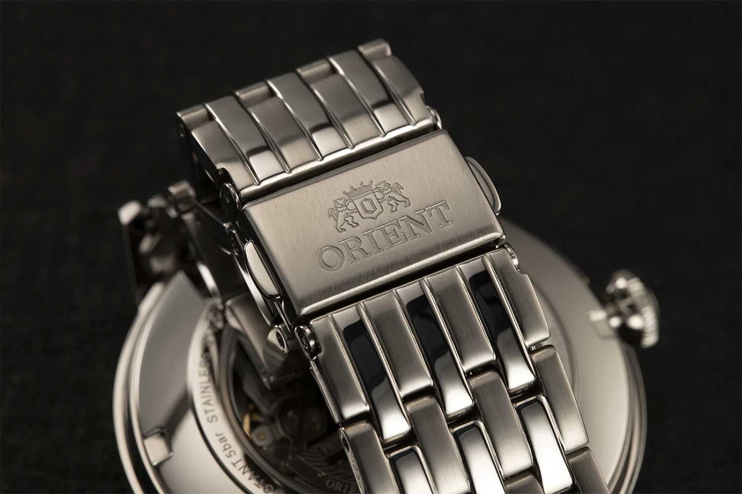 Удобная застежка, расстегиваемая одним касанием. Благодаря своей конструкции она никогда не размыкается полностью, а раскладывается на три части. Это позволяет легко снимать и надевать часы, сводя вероятность их падения или потери при случайном расстегивании к минимуму.