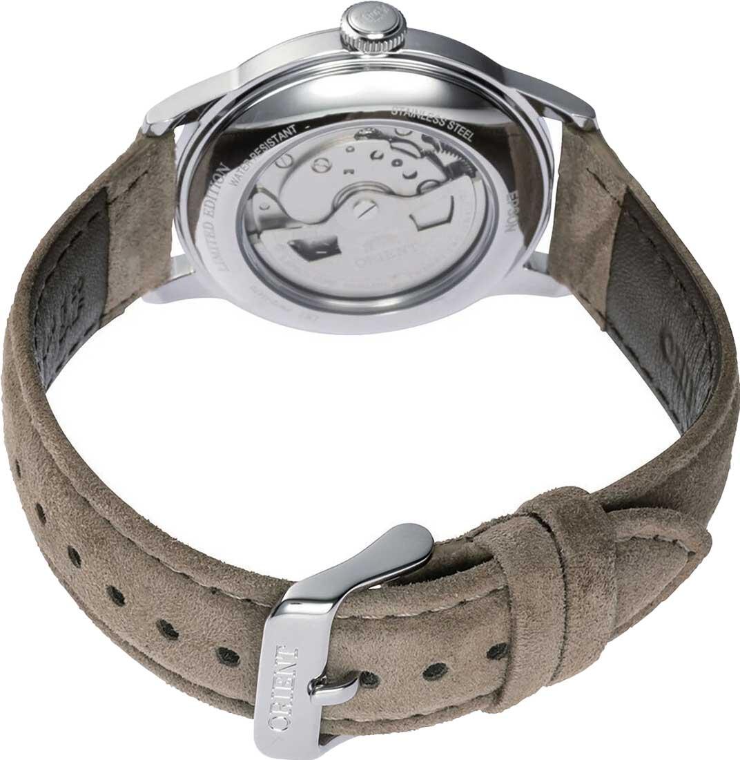 Мужские механические часы с автоподзаводом (возможность ручного подзавода). Калибр механизма F6724 на 22 камнях. Частота 21 600 полуколебаний в час. Запас хода 40 часов. Центральные часовая, минутная и секундная стрелки. Апертура даты в позиции 3 часов. Темно-синий циферблат. Круглый корпус выполнен из нержавеющей стали. Диаметр корпуса составляет 38,4 мм. Коричневый кожаный ремешок, стандартная застежка. Выпуклое минеральное стекло, устойчивое к мелким механическим повреждениям. Прозрачная задняя крышка. Водостойкость 30 метров (3 АТМ/bar): минимальная защита от мелких брызг. Часы не предназначены для погружения в воду.