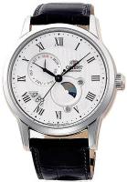 Мужские механические наручные часы с автоподзаводом и возможностью ручного завода коллекции Sun & Moon. Круглый стальной корпус. Белый циферблат. Сапфировое стекло. Водозащита 50 м. Синий кожаный ремешок. Надежная застежка с тройным сгибом.