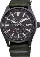 Японский автоматический механизм ORIENT F6B22(AK) (22 рубиновых камня, частота полуколебаний баланса 21600 полуоб/час. Автоподзавод. Возможность ручного завода. Противоударное устройство оси баланса.). Центральная секундная стрелка. • Запас хода более 40 часов. • Точность хода не хуже -15...+25 сек./в сутки. • Функция стоп-секунда (остановка секундной стрелки для установки точного времени). Апертура даты в позиции 3 часов. • Указатели дня недели и суточника в отдельных окошках. • Светонакопительный состав на стрелках и маркерах часа. • Корпус из стального сплава 316L с высокими антикоррозийными свойствами с PVD покрытием черного цвета. • Завинчивающаяся заводная головка. • Минеральное стекло устойчивое к возникновению царапин. • Водозащита до 10 АТМ. • Прочный матерчатый ремешок. • Ширина крепления ремешка 22 мм. • Простая ремешковая пряжка.