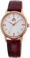 Женские наручные часы Orient Automatic RA-NB0105S. Механические с ручным подзаводом. Ремешок изготовлен из кожи. Браслет из нержавеющей стали. Прочное, устойчивое к царапинам минеральное стекло защищает часы от повреждений. Часы являются водонепроницаемыми до 10 Бар. Цвет циферблата: Розовое золото. Цвет корпуса: Белый. Толщина: 11 мм. Гарантия: 2 года.