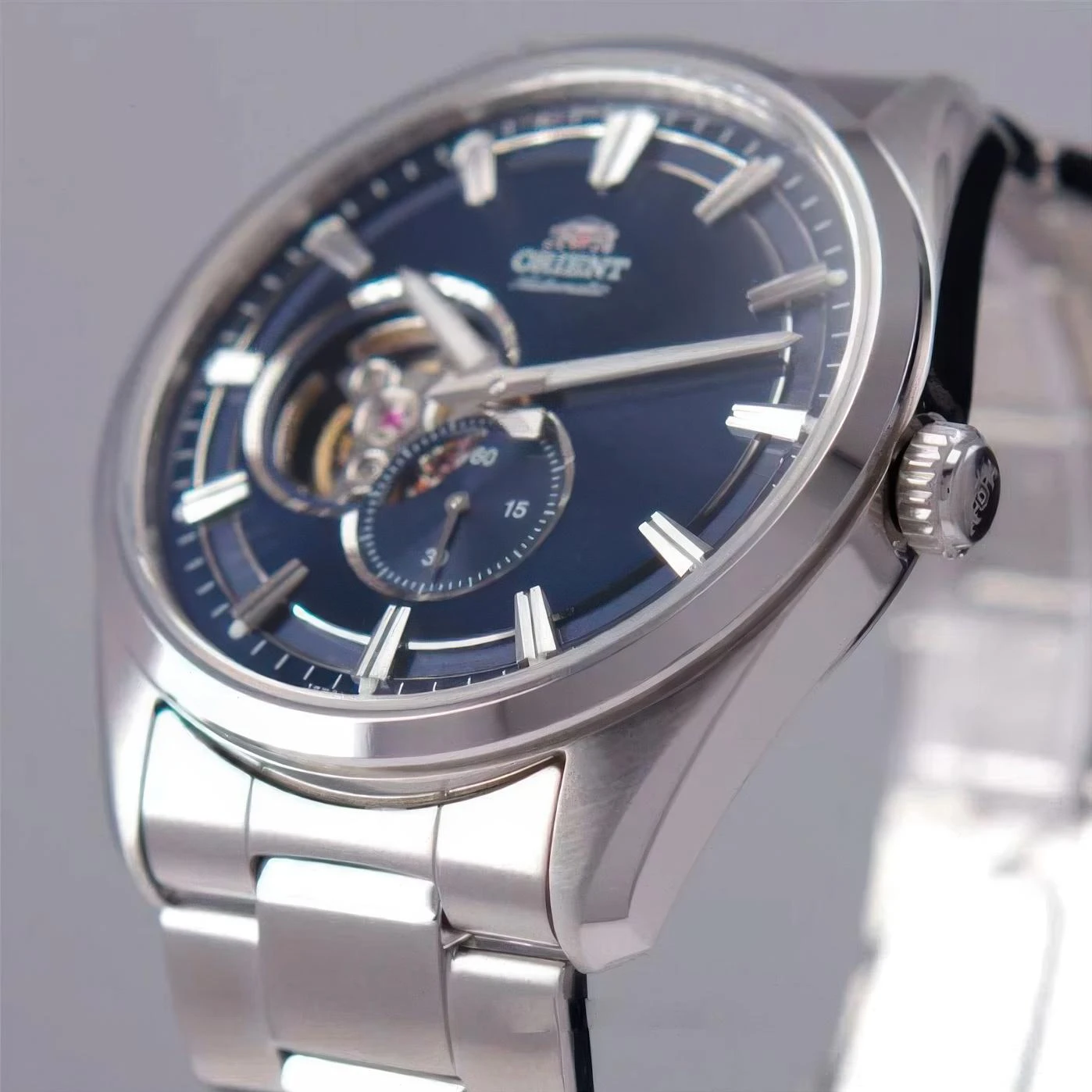 Мужские наручные часы Orient Automatic RN-AR0002L. Механические с ручным подзаводом. Браслет из нержавеющей стали. Браслет из нержавеющей стали. Сапфировое стекло. Искусственно изготовленное стекло с высокой прочностью и устойчивостью к царапинам. Часы являются водонепроницаемыми до 5 Бар. Цвет циферблата: Серебристый. Цвет корпуса: Синий. На стрелки и отметки нанесен светонакопительный состав, благодаря этому считывать информацию с циферблата возможно и в темноте. Высота (с ушками): 48 мм. Толщина: 11 мм. Гарантия: 2 года.