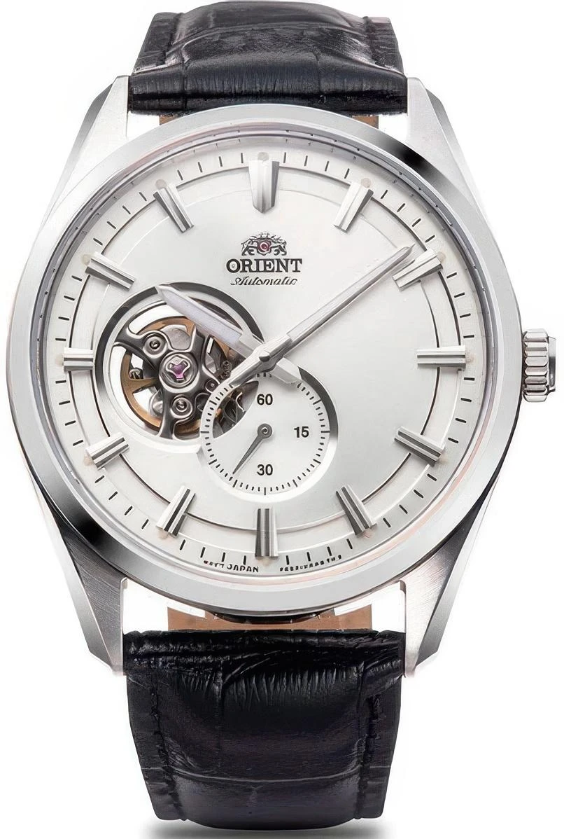 Мужские наручные часы Orient Automatic RN-AR0003S. Механические с ручным подзаводом. Ремешок изготовлен из кожи. Браслет из нержавеющей стали. Сапфировое стекло. Искусственно изготовленное стекло с высокой прочностью и устойчивостью к царапинам. Часы являются водонепроницаемыми до 5 Бар. Цвет циферблата: Серебристый. Цвет корпуса: Белый. На стрелки и отметки нанесен светонакопительный состав, благодаря этому считывать информацию с циферблата возможно и в темноте. Высота (с ушками): 48 мм. Толщина: 11 мм. Гарантия: 2 года.