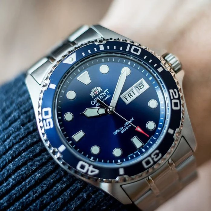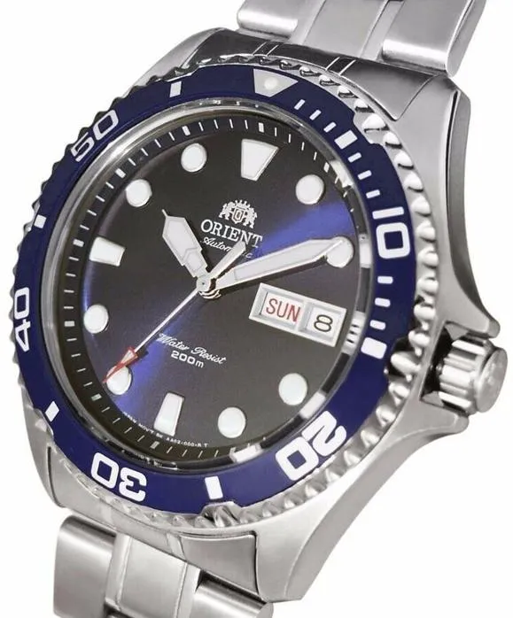 Мужские наручные часы Orient Automatic TAA02005D. Механические с автоподзаводом. Пружина механизма заводится автоматически благодаря естественным движениям владельца в процессе ежедневной носки часов. На стрелки и отметки нанесен светонакопительный состав, благодаря этому считывать информацию с циферблата возможно и в темноте. Браслет из нержавеющей стали обладает высокой прочностью и износостойкостью, обеспечивая долговечность даже при активной эксплуатации. Материал устойчив к коррозии и сохраняет свой внешний вид надолго. Ударопрочная конструкция часов защищает от ударов и вибрации. Корпус изготовлен из высококачественной нержавеющей стали 316L с высокими антикоррозийными свойствами. Прочное, устойчивое к царапинам минеральное стекло защищает часы от повреждений. Часы являются водонепроницаемыми до 20 Бар. Цвет корпуса: Серебристый. Цвет циферблата: Синий. Толщина: 12 мм. Гарантия: 2 года.