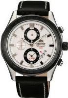 Мужские наручные часы, оснащённые хронографом с функцией секундомера в комбинированном корпусе, на кожаном ремешке.