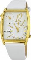 Женские наручные часы Orient Jewelry Collection FUBUF003W. Точный кварцевый механизм с аналоговой индикацией. Корпус изготовлен из высококачественной нержавеющей стали 316L с высокими антикоррозийными свойствами. Ремешок изготовлен из кожи. Прочное, устойчивое к царапинам минеральное стекло защищает часы от повреждений. Часы являются водонепроницаемыми до 3 Бар. Цвет корпуса: Желтое золото. Цвет циферблата: Белый. Ширина (с заводной головкой): 40мм. Толщина: 8мм. Гарантия: 2 года.