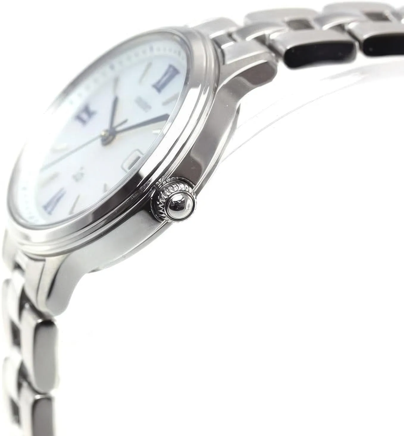 Женские наручные часы Orient IO RN-WG0007A. Точный кварцевый механизм с аналоговой индикацией. Браслет из нержавеющей стали. Солнечная батарейка. Солнечная подзаряжающаяся батарейка обеспечивает питание часов для работы. После настройки автоматический календарь всегда отображает точную дату. Браслет из нержавеющей стали. Сапфировое стекло. Искусственно изготовленное стекло с высокой прочностью и устойчивостью к царапинам. На циферблате отображается текущее число месяца. Часы являются водонепроницаемыми до 5 Бар. Цвет циферблата: Серебристый. Цвет корпуса: Белый. Цвет корпуса: Синий. Толщина: 7 мм. Гарантия: 2 года.
