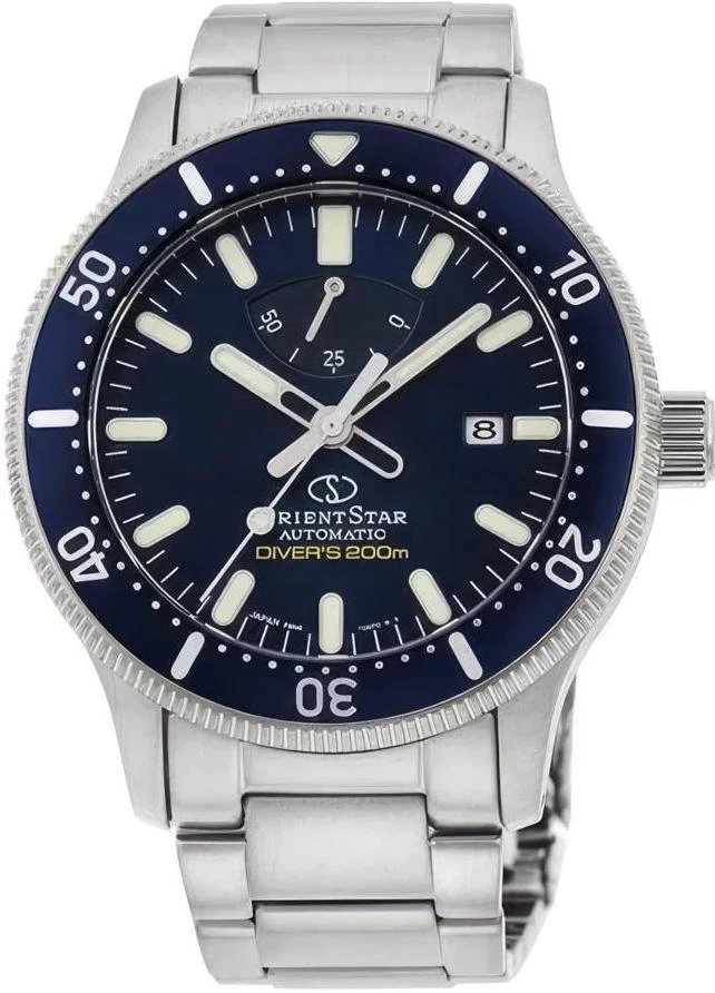 Мужские механические часы с автоподзаводом из серии Orient Star. Круглый корпус из полированной нержавеющей стали с PVD покрытием синего цвета по безелю. Стальной браслет. Сапфировое стекло. Водозащита 200 м. Браслетный замок с тройным сгибом.