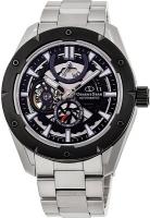 Мужские механические часы с автоподзаводом из серии ORIENT STAR Avant-garde Skeleton. Круглый стальной корпус. Разноцветный циферблат. Сапфировое стекло с антибликовым покрытием. Водозащита 100м. Стальной браслет. Раскладывающаяся застежка.
