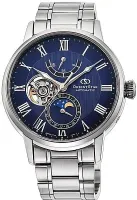 Новая модель Mechanical Moon Phase представляет собой усовершенствованную версию самых известных часов ORIENT — STAR, но с новым мануфактурным механизмом и 50-часовым запасом хода. Она оснащена открытым балансом, индикатором запаса хода у отметки 12 часов, индикатором фазы луны и окошком даты у отметки 6 часов. Циферблат украшен уникальным струящимся водным узором. Градиентность оттенков придает циферблату контрастности и дополнительной глубины. На окошке, отображающем фазы луны, изображена луна, мягко подсвечивающая текущую реку, в то время как стрелки в форме кристаллов стали воплощением сверкающих звезд. Часовая и минутная стрелки стали немного шире, а часовая — еще и короче, чтобы не перекрывать часовые метки. Благодаря этим утонченным деталям дизайнеры добились легкой читаемости циферблата часов. Модель защищена сапфировым стеклом с антибликовым покрытием с обеих сторон (покрытие SAR) для устранения бликов. Задняя часть корпуса также изготовлена из сапфирового стекла, а корпус и металлический браслет произведены из высококачественной нержавеющей стали (SUS316L). Результатом стала практичная и в то же время элегантная модель часов на каждый день, доказывающая, что механические часы могут выглядеть очень стильно.