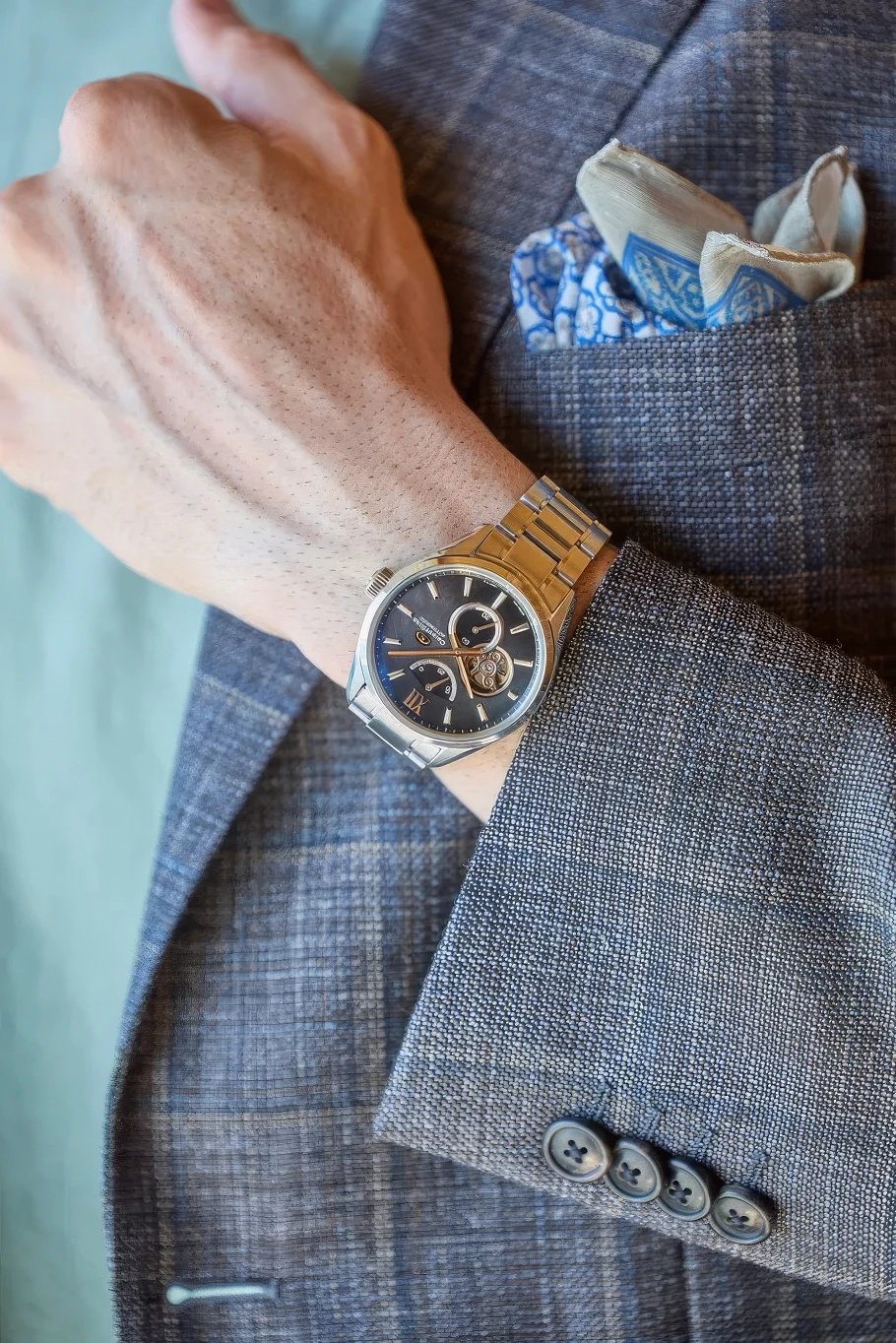 Мужские наручные часы Orient Orient Star RE-BY0007A. Механические с автоподзаводом. Пружина механизма заводится автоматически благодаря естественным движениям владельца в процессе ежедневной носки часов. Браслет из нержавеющей стали. Браслет из нержавеющей стали. Сапфировое стекло. Искусственно изготовленное стекло с высокой прочностью и устойчивостью к царапинам. Часы являются водонепроницаемыми до 10 Бар. Цвет циферблата: Серебристый. Цвет корпуса: Разноцветный. На стрелки и отметки нанесен светонакопительный состав, благодаря этому считывать информацию с циферблата возможно и в темноте. Толщина: 13 мм. Гарантия: 2 года.