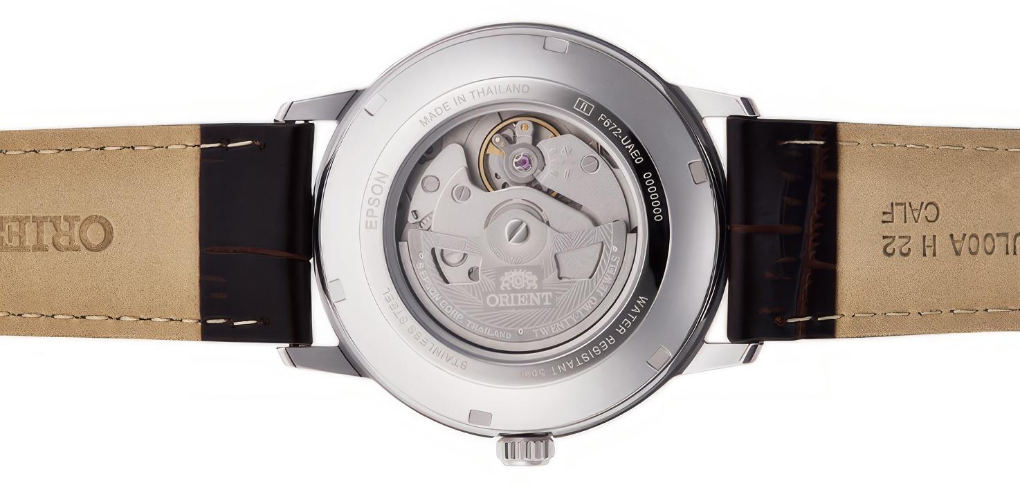 Мужские механические часы с автоподзаводом из коллекции Orient Contemporary. Эта модель сочетает в себе классический дизайн и современные механические технологии. Часы оснащены белым циферблатом с серебристыми стрелками и индексами, что придаёт им элегантный и сдержанный вид. Круглый корпус диаметром 41,6 мм выполнен из нержавеющей стали, а задняя крышка с минеральным стеклом позволяет наблюдать за работой механизма. Механизм Cal. F6722 с 22 камнями и частотой 21 600 полуколебаний в час обеспечивает точность хода и надёжность. Водостойкость уровня WR 50 (50 метров) делают модель подходящей для повседневного использования: выдерживают мытье рук, попадание крупных капель.