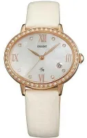 Женские наручные часы Orient Rose FUNEK002W. Точный кварцевый механизм с аналоговой индикацией. Корпус изготовлен из высококачественной нержавеющей стали 316L с высокими антикоррозийными свойствами. На циферблате отображается текущее число месяца. Ремешок изготовлен из кожи. Прочное, устойчивое к царапинам минеральное стекло защищает часы от повреждений. Часы являются водонепроницаемыми до 3 Бар. Цвет корпуса: Розовое золото. Цвет циферблата: Белый. Ширина (с заводной головкой): 36мм. Толщина: 8мм. Гарантия: 2 года.
