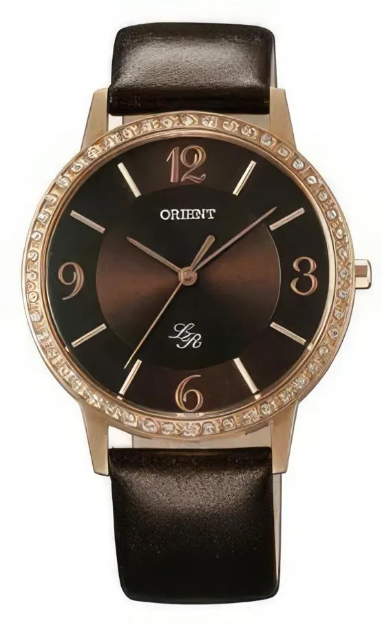 Изысканные женские наручные часы с коричневым кожаным ремешком в цвет циферблата.