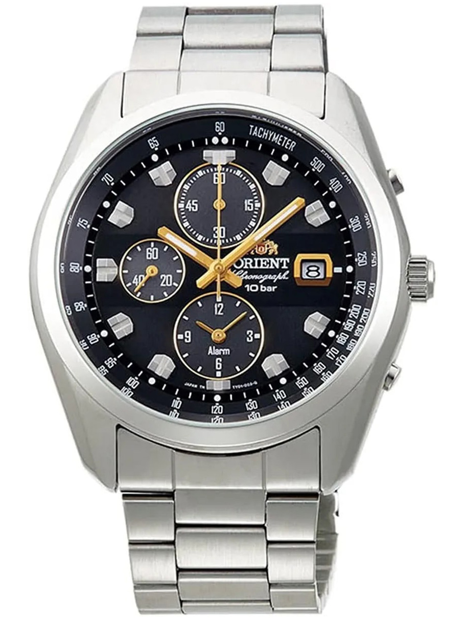 Мужские наручные часы Orient Sporty WV0091TY. Точный кварцевый механизм с аналоговой индикацией. Браслет из нержавеющей стали. Функция хронографа. Браслет из нержавеющей стали. Прочное, устойчивое к царапинам минеральное стекло защищает часы от повреждений. На циферблате отображается текущее число месяца. Часы являются водонепроницаемыми до 10 Бар. Цвет циферблата: Серебристый. Цвет корпуса: Черный. На стрелки и отметки нанесен светонакопительный состав, благодаря этому считывать информацию с циферблата возможно и в темноте. Толщина: 12 мм. Гарантия: 2 года.