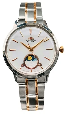 Женские кварцевые часы из серии Classic Sun&Moon. Круглый корпус из нержавеющей стали. Белый циферблат. Регулируемый по длине браслет из нержавеющей стали с частичным розовым PVD покрытием. Браслетная застежка. Минеральное стекло. Водозащита 30 м.