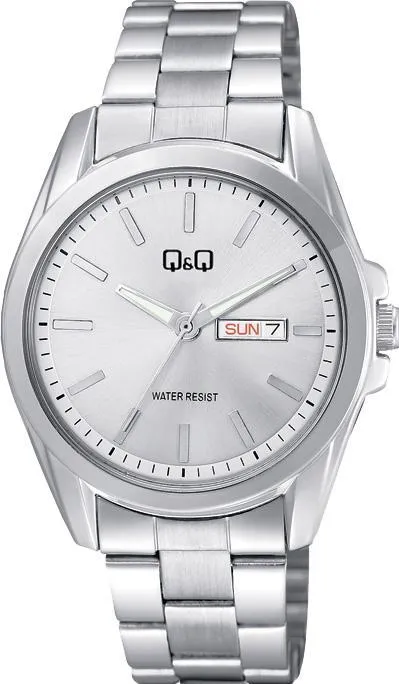 Мужские наручные часы Q&Q Attractive A05AJ003Y. Точный кварцевый механизм с аналоговой индикацией. Браслет из нержавеющей стали. Браслет из нержавеющей стали. Прочное, устойчивое к царапинам минеральное стекло защищает часы от повреждений. На циферблате отображается текущее число месяца и день недели. Часы являются водонепроницаемыми до 3 Бар. Цвет циферблата: Серебристый. Цвет корпуса: Серебристый. Светодиодная подсветка. Толщина: 9 мм. Гарантия: 1 год.