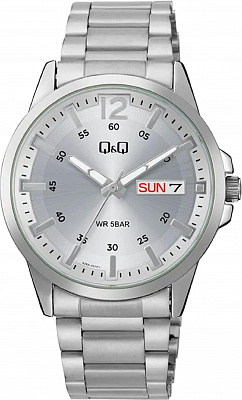 . Точный кварцевый механизм с аналоговой индикацией. Браслет из нержавеющей стали. Латунный браслет. Прочное, устойчивое к царапинам минеральное стекло защищает часы от повреждений. На циферблате отображается текущее число месяца и день недели. Часы являются водонепроницаемыми до 5 Бар. Цвет циферблата: Серебристый. Цвет корпуса: Серебристый. Толщина: 11 мм. Гарантия: 1 год.