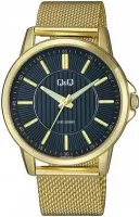 Мужские наручные часы Q&Q Attractive A472J003Y. Точный кварцевый механизм. Корпус изготовлен из высококачественной нержавеющей стали 316L с высокими антикоррозийными свойствами. На стрелки и отметки нанесен светонакопительный состав, благодаря этому считывать информацию с циферблата возможно и в темноте. На циферблате отображается текущее число месяца. Браслет из нержавеющей стали. Прочное, устойчивое к царапинам минеральное стекло защищает часы от повреждений. Часы являются водонепроницаемыми до 5 Бар. Цвет корпуса: Желтое золото. Ширина (с заводной головкой): 42мм. Толщина: 11мм. Гарантия: 1 год.